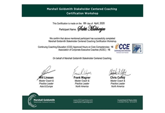 He is also a Certified Marshall Goldsmith Executive Coach & Balanced Scorecard Implementor.