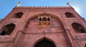 The Jama Masjid in Delhi is primarily an example of Mughal architecture, constructed between 1644 and 1658 during the reign of Shah Jahan. He instructed the mosque’s architect, Ustad Khalilullah Khan, to design a grand and imposing structure that would reflect his vision of Islamic architecture, with elements of both Persian and Indian design. There are some elements of Rajasthani architecture incorporated into the mosque, such as the Jharokha balcony (see picture) you would see in some of the forts in Rajasthan. Another element of Indian architecture that is present in Jama Masjid is the use of Chhatris or small domed pavilions, located on the top of the mosque’s minarets. These are a common feature of Indian architecture, particularly in Rajasthani palaces and other buildings.